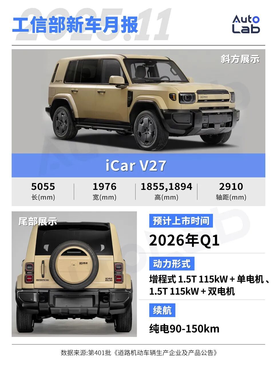 尺寸上,iCar V27也是iCar目前最大的车,尺寸来到了5米级,比V23要大上一圈。