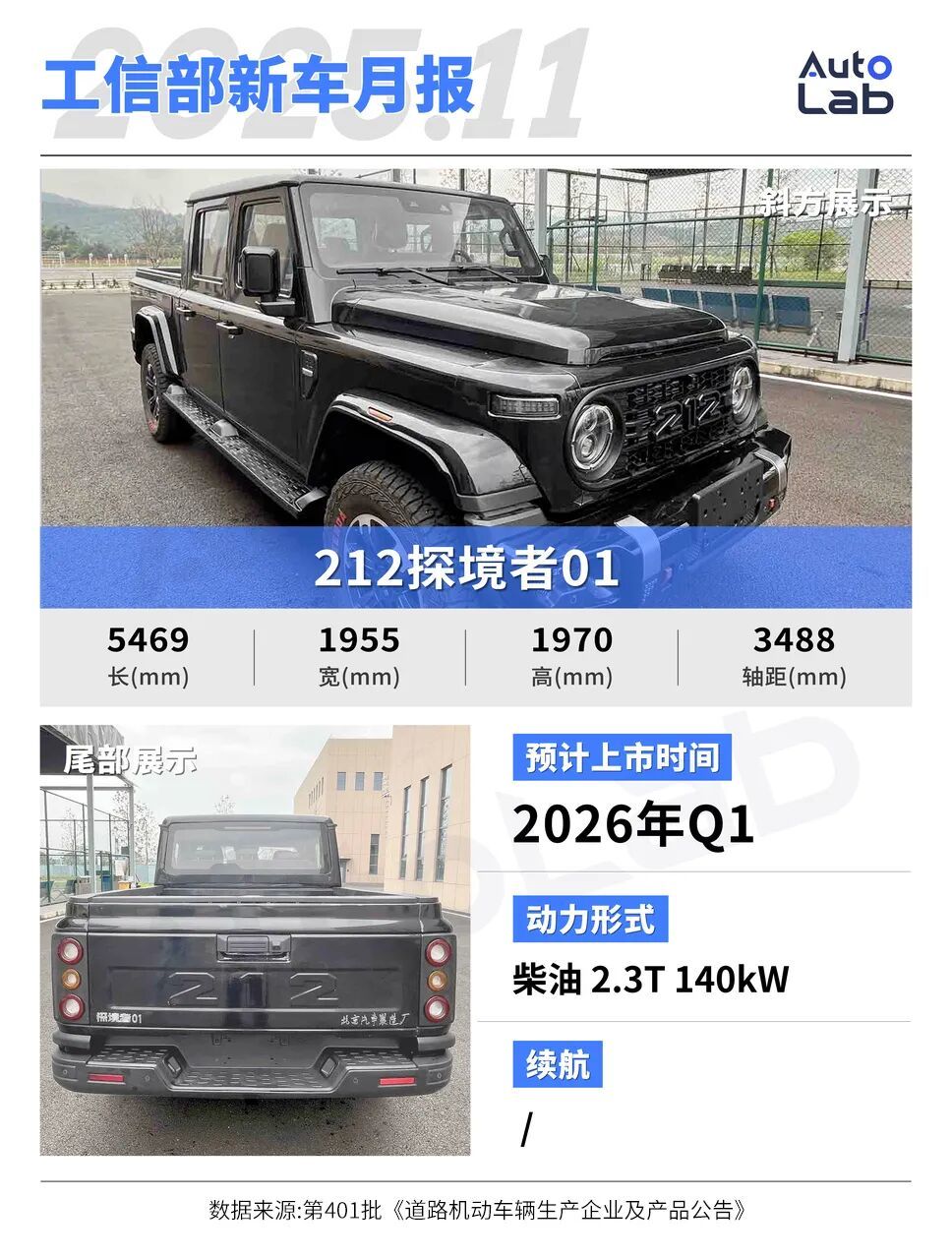 212推出了一个全新的皮卡版本——212探境者01,长得非常像是一台212版本的Jeep角斗士。