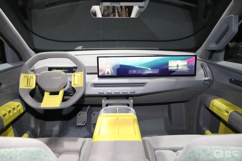 造型方面,EV5 Weekender延续了起亚“对立统一(Opposites United)”设计理念,前脸灯组为贯穿式设计,内部则采用了点阵式布局。粗壮的前保险杠点缀柑橘绿装饰,透着一股霸气又不失时尚的气息。此外,新车在前机舱盖上还搭载了运动相机,满足户外爱好者的摄影需求。同时,新车前后保险杠处加入了拖钩。