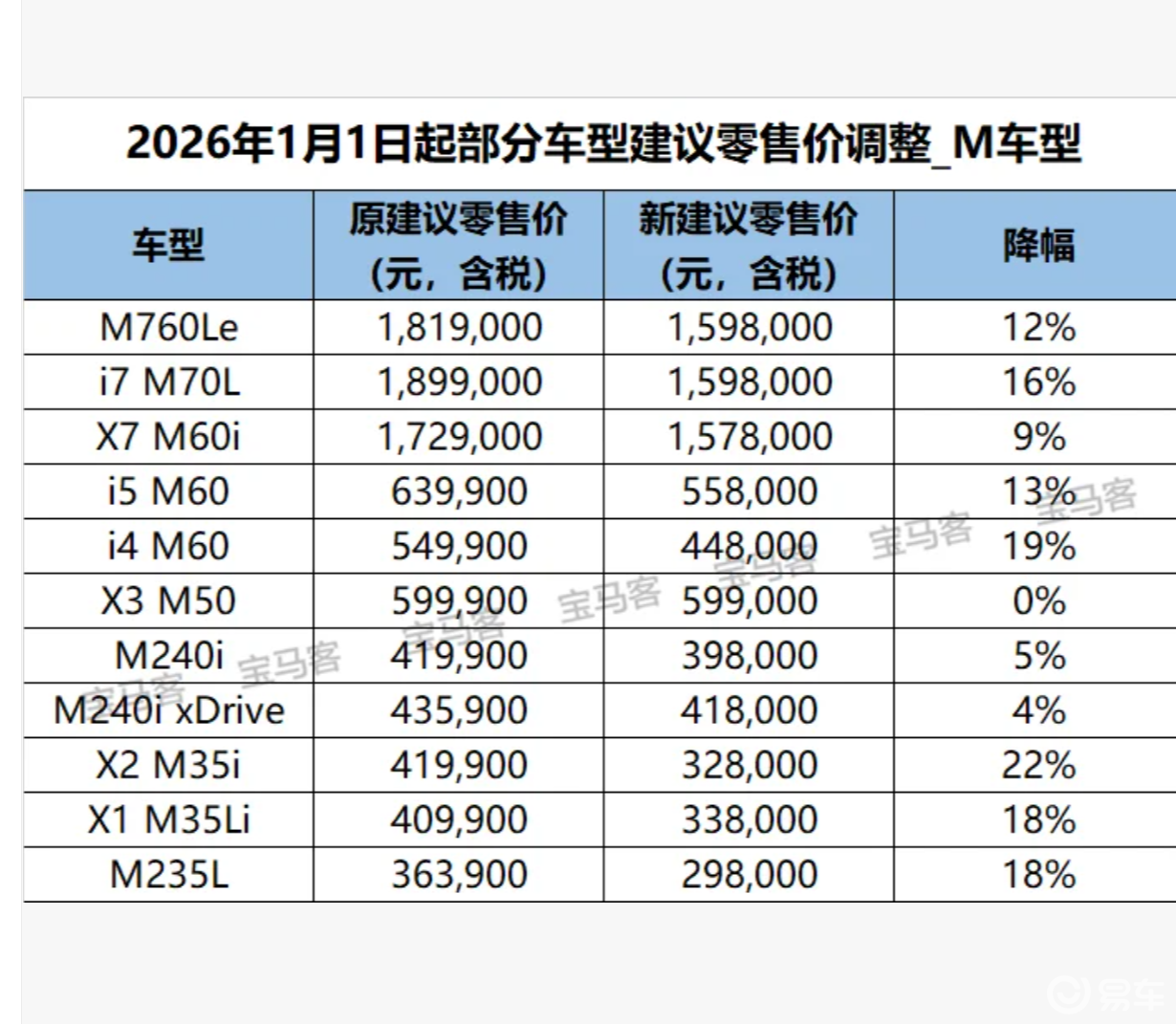 M高性能系列的调价则让“性能爱好者”狂喜。i4 M60从54.99万元降至44.8万元,降幅19%;X2 M35i从41.99万元降至32.8万元,降幅22%;M235L从36.39万元降至29.8万元,降幅18%。以往高高在上的高性能车型,如今价格大幅下探,无疑将吸引更多追求驾驶乐趣的消费者。