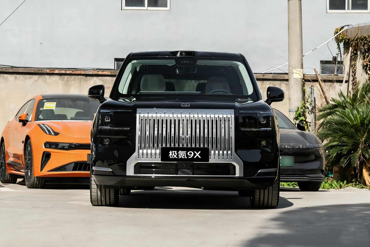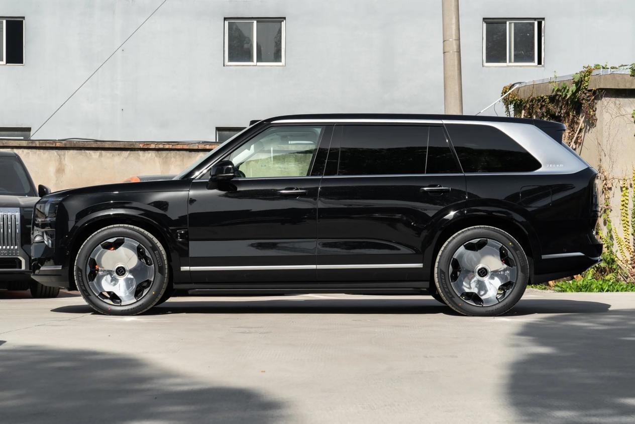 全尺寸SUV之所以气场强大,很大程度上源自于大体格拥有的压迫感。先看杭州湾库利南极氪9X,它采用方正的车身设计,车身都是平直的线条,搭配方正的中网带来旗舰车型的威压感。值得一提的是,它的中网设计很有意思,下方还带有基座形状,细节效果很出色。另外超豪华车型流行的镜面锻造轮圈也出现在它身上,所以整台车看着气场确实很强。