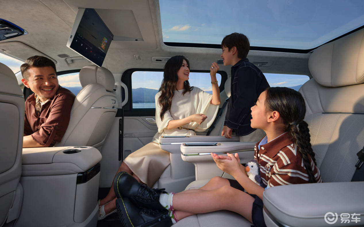 豪华的本质是对细节的敬畏,银河V900将这种敬畏融入每一处座舱设计,诠释了“国际审美,东方表达”的独特韵味。前脸“水韵金晖”格栅汲取西湖与泰晤士河的波光灵感,大灯“拱桥映月”设计承载着连接与圆满的寓意,没有刻意堆砌东方符号,却在全球共通的美学语境中传递出东方诗意。座舱内,11层云感SPA座椅配齐全排通风、加热功能,二排专属按摩与三排电动靠背调节兼顾每一位乘员的舒适;27扬声器影音系统、超宽温域冷暖箱、图书馆级静谧座舱等配置,将出行场景延伸为家庭生活的延伸场域。这种豪华不局限于材质的堆砌,而是让老人、孩子、成年人都能在途中获得专属关怀,恰如一场精心烹制的家宴,兼顾每一个人的口味。