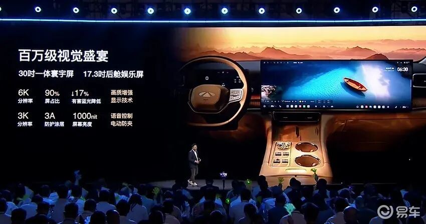 智能座舱方面,新车全系标配30英寸6K一体化双联屏,内置搭载高通 8255 芯片,其语音系统能够精准响应不同座位的指令,连续多指令处理能力非常强,能够满足用户的日常需求。