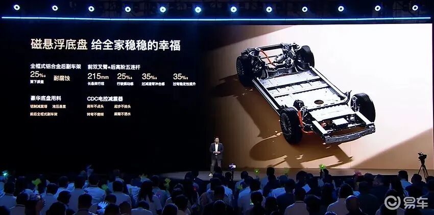 据李学用介绍,新车基于 "磐石 2.0" 车身架构打造,热成型钢占比 23%,铝合金占比20%,关键部位采用超高强度钢,车身扭转刚度达 37300N・m/deg,不仅车身强度更高不易变形,还降低了车身振动噪音,在同级别车型中处于较高水平。