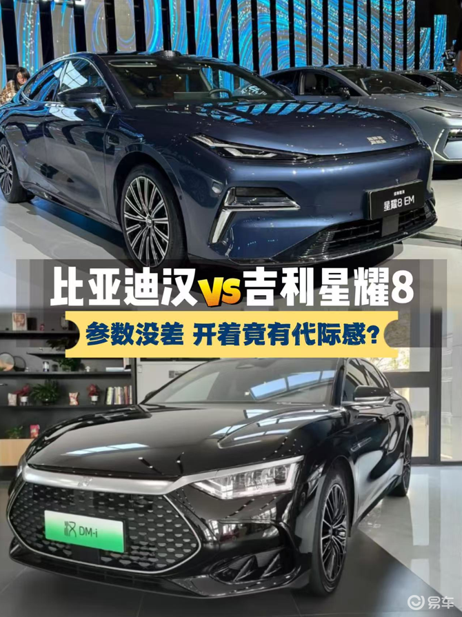 以前买车讲究的是“一分钱一分货”,可现在不仅十几万预算就能摸到5米长的中大型混动轿车,还选择不少。像是比亚迪汉DM-i和吉利银河星耀8 EM-i,都是热门选手。前者是卖了好几年的“同级常青树”,后者是刚上市的“新鲜血液”。单看参数表的话,俩车尺寸,价格几乎没差,不少人挑到眼花。今天咱们就抛开冰冷的参数,从实际体验聊聊,这俩车到底谁更值得选。