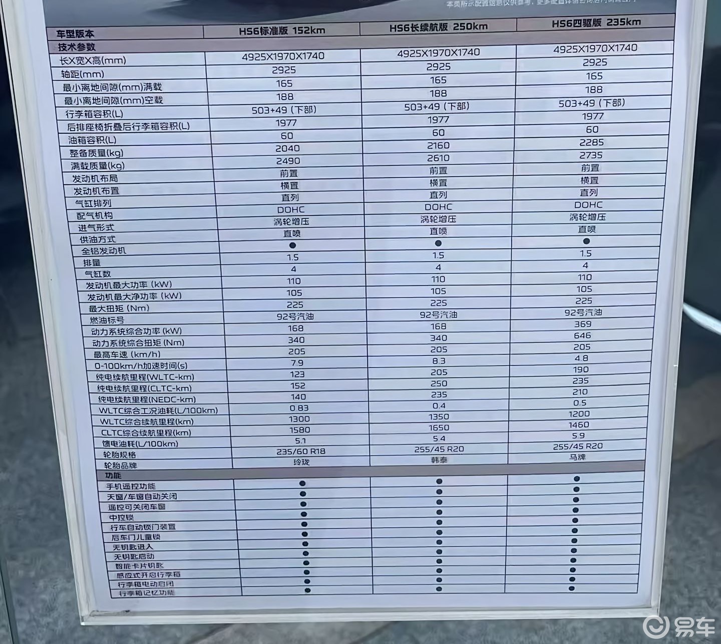 至于动力方面,红旗HS6 PHEV将搭载1.5T插混系统,其中1.5T发动机最大功率110kW,并提供两驱和四驱车型,系统综合功率分别为168kW(228马力)、369kW(502马力),匹配容量为23.9kWh、39.5kWh的电池组,CLTC纯电续航分别为152km、250km、235km(四驱),而CLTC综合续航最高为1650km。
