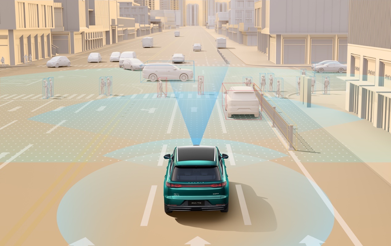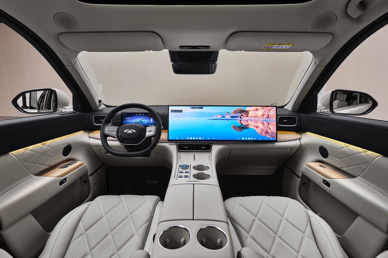 车身尺寸为5205×1998×1800mm,轴距3120mm,属于大型SUV范畴。外观方面采用封闭式前格栅搭配细长灯组,车顶配备激光雷达。内饰提供三种配色可选,搭载30英寸一体式屏幕、怀挡等设计。