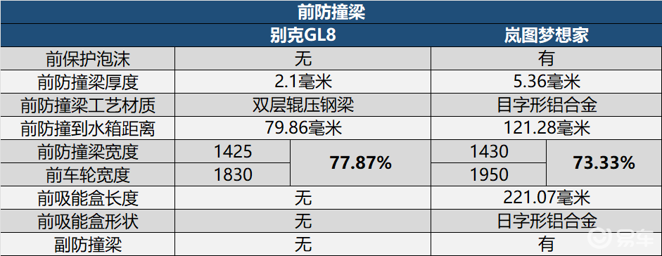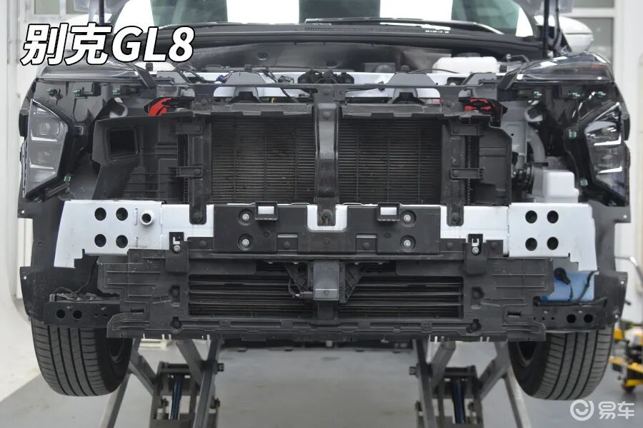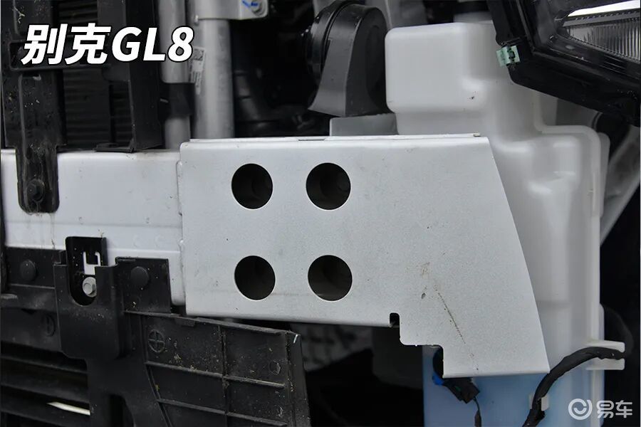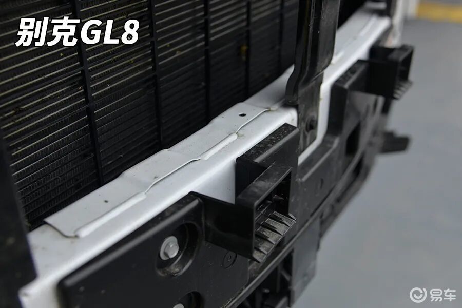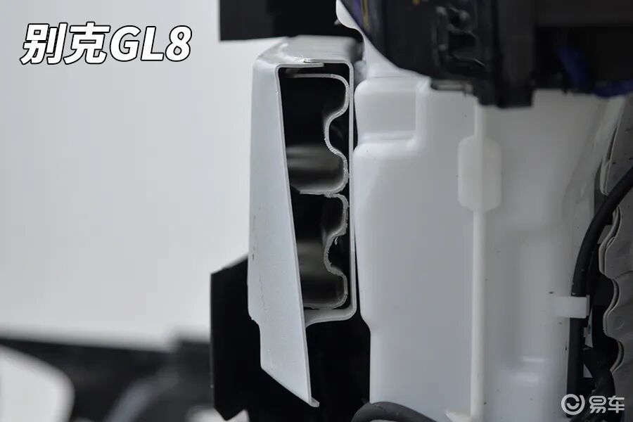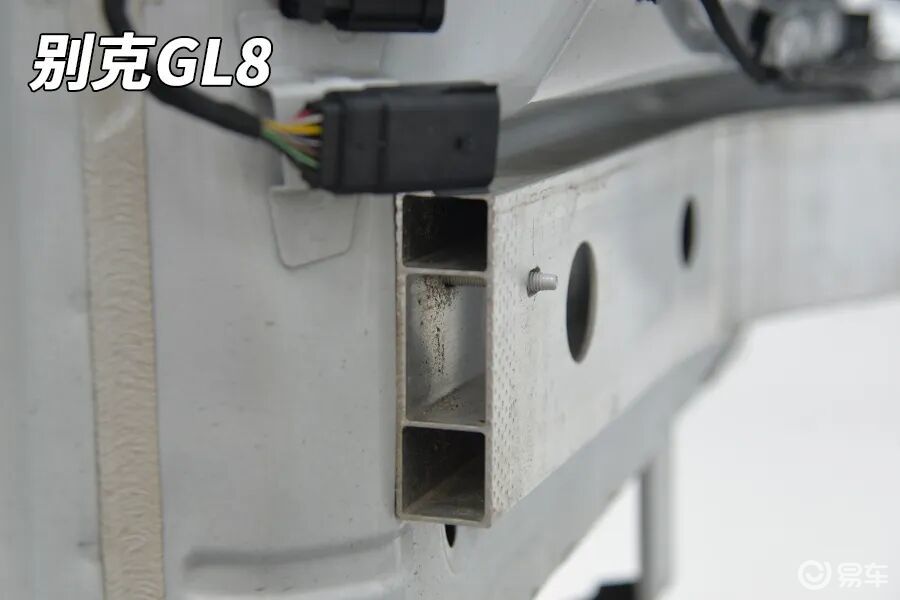 别克GL8的前防撞梁为双层辊压钢板,厚度2.1毫米,没有行人保护泡沫。