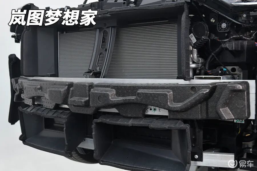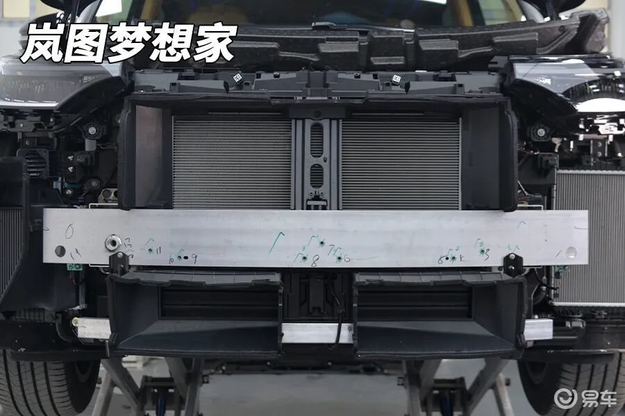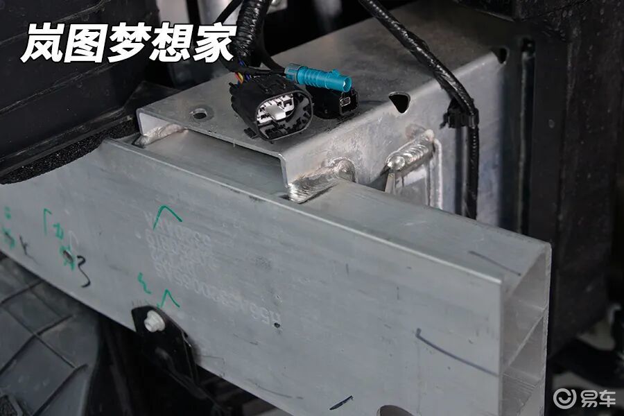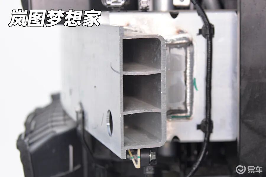 岚图梦想家有一根厚实的铝合金防撞梁,厚度为5.36毫米,“目”字形结构。