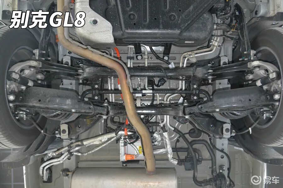 别克GL8的底盘是明显的“油改电”,并不是原生新能源平台,因此平整度一般,留给电池的空间很小,电池容量只有34.8千瓦时,厚度比较厚,凸出底盘两三厘米,电池端子没有任何保护,托底容易受损。