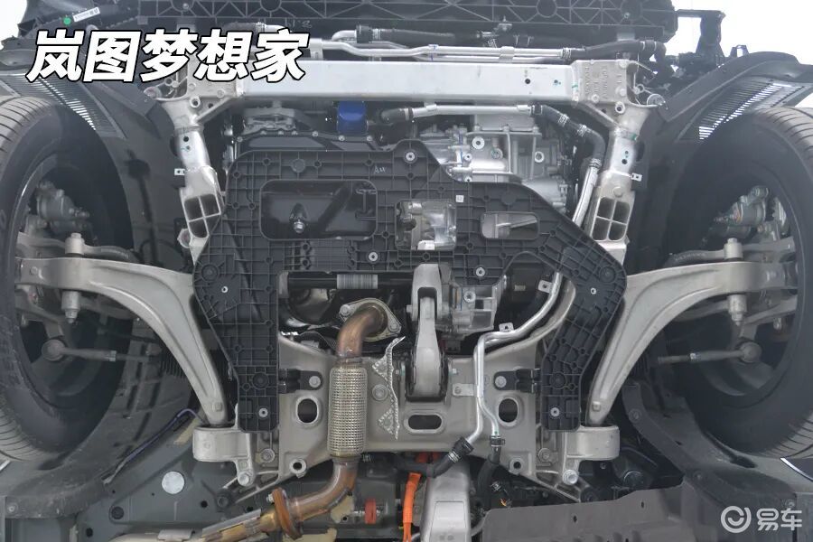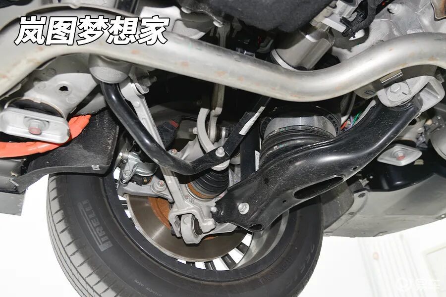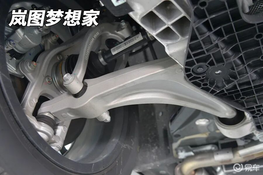 岚图梦想家的前副车架是粗壮的铸造铝合金,也是全框式结构。