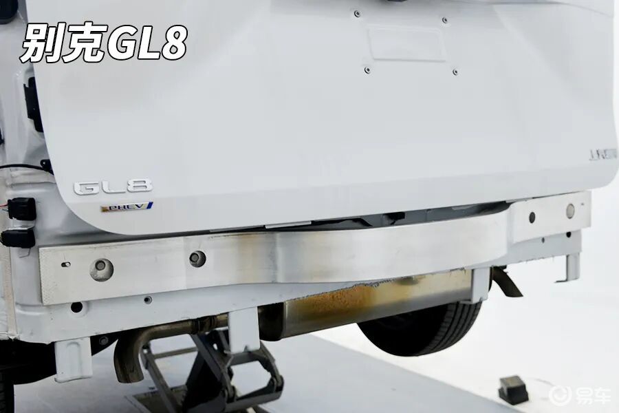别克GL8后防撞梁为2.12毫米厚的铝合金材质,但造型只能用“奇怪”两个字来形容,呈U型,仅保护中央40%的宽度。