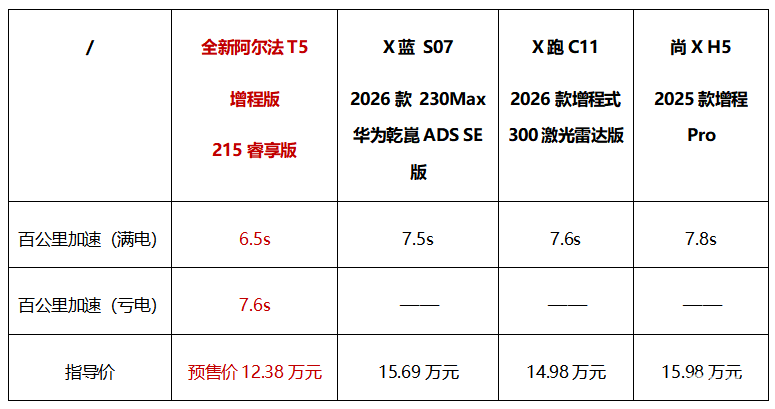 在家庭用户关心的动力方面,全新阿尔法T5增程版峰值功率200kW,峰值扭矩365N·m,满电零百加速仅6.5秒,即使在亏电状态下零百加速仍能保持7.6秒优异成绩,爬坡过坎、高速超车全部游刃有余。无论满电馈电,全新阿尔法T5性能随时在线,“快人一步”尽享百万级别澎湃驾控。