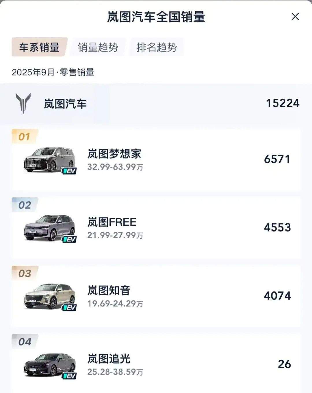 另一个值得关注的风险是岚图在产品结构上的“单极依赖”现象。MPV车型梦想家是岚图的销量支柱,2023年该车型销售2.65万辆,2024年攀升至4.67万辆,连续两年贡献岚图总销量的一半以上。