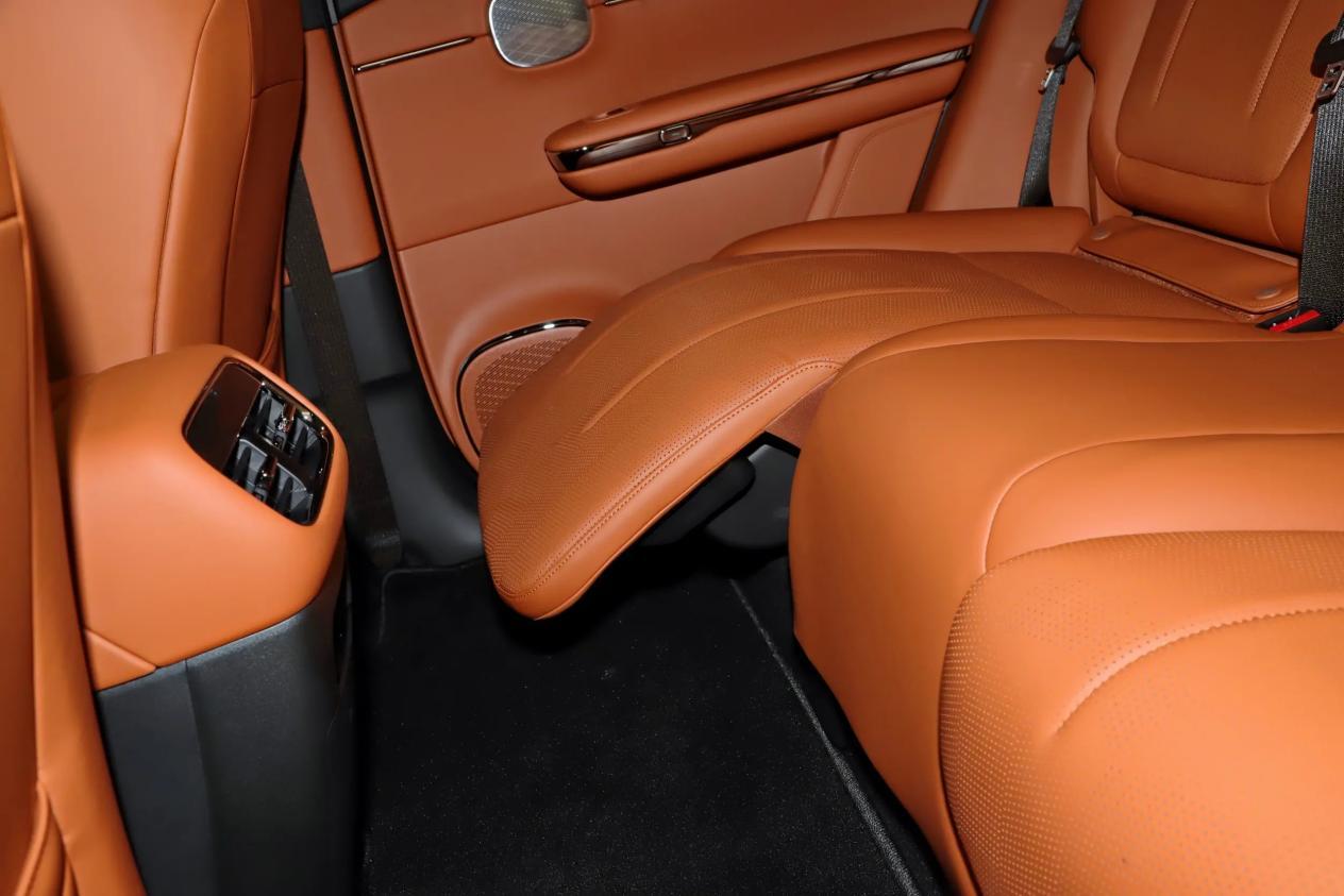 舒适性方面,新车的座椅设计贴合人体曲线,支撑性高,内部采用15毫米加厚慢回弹海绵层,均匀分散身体压力,即使长途乘坐也不易疲劳。前排标配加热和通风功能,二排座椅靠背调节角度能达到137°,比NASA标准多2°,提供类似零重力乘坐体验。支持电动无级调节和腿托调节,舒适性非常高。另外内部配备2.6平方米的玻璃天幕,座舱通透开阔,乘坐不压抑。