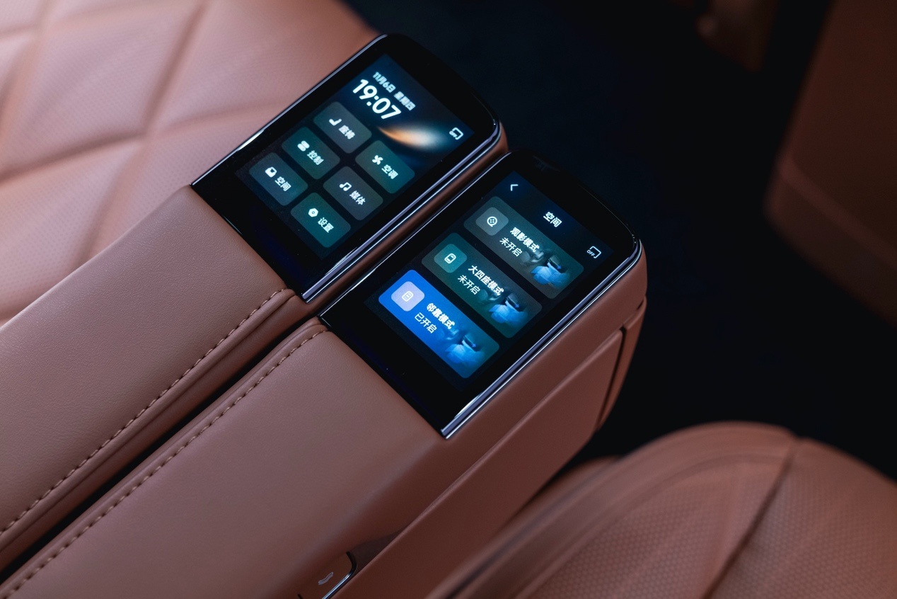 车身尺寸为 5230×2025×1817mm,轴距达 3120mm,为车内营造了宽敞的空间。前排头部空间有 1070mm,乘坐宽度达到 1494mm,让前排乘客尽享舒适。“2+2+2”的六座布局清晰地锁定了高端家庭与商务精英这两大目标群体,第二排配备的AI云舒零重力座椅,结合数量较多的扬声器构筑的环绕声场,为用户的长途出行提供了越级的舒适体验。